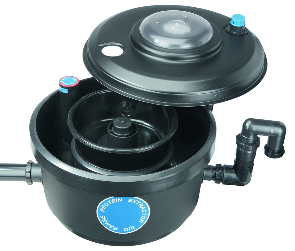 Zur schnellen und effektiven Abschäumung von Eiweißverbindungen und Schmutzpartikeln aus Teich und Hälterungsanlagen. Besonders bei stark belastetem Wasser bietet die Süßwasserabschäumung eine gute Möglichkeit zur Wasseraufbereitung. Organische Verbindungen werden vor der Zersetzung aus dem Kreislauf entfernt und entlasten somit die biologische Filterung. Eiweißabschäumer werden als unterstützende Filtereinheit eingesetzt. Eiweißabschäumer mit effektivem Zweikammersystem und Venturidüse Pumpbetrieb Lufteinzug regulierbar Wasserstand regulierbar Mit Sichtfenster Inkl. Schmutzauffangbehälter